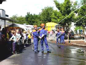 | Die Vorführung der Jugendfeuerwehr Zentrum wurde neugierig verfolgt | ||