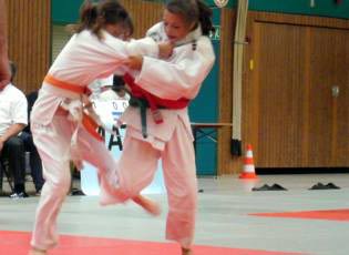 Auch Verena Serra (-63 kg) hatte mit dem Gewinn der Silbermedaille eine tolle Leistung hingelegt. Ihre Spezialtechnik Soto-maki-komi brachte sie bis ins Finale, was nur durch einen missglückten Wurf verloren ging. Mit wirklich fünf starken Gegnern, unter andern Michel Bazynski oder der Regionalligakämpferin Anja Buchta, hatte es in der Gewichtsklasse bis 52 kg Nadja Köbernik zu tun, was schwere Kämpfe erwarten ließ. Dennoch meisterte sie die Sache zu ihren Gunsten und gewann mit zwei Siegen, einen davon gegen Buchta, Bronze. Victoria Pfeifer wurde Fünfte, Nachwuchskämpferin Pauline Braach lässt nach ihrem ersten größeren Turnier für die Zukunft hoffen. |