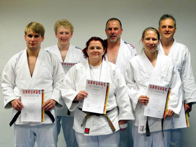Mit Manuel Gabsa Anke Pfeifer Dr. Tanja Trögele Stefan Schnitzler und Bernd Spornhauer waren gleich fünf Judofreunde bei der Dan-Prüfung in Hagen erfolgreich. |