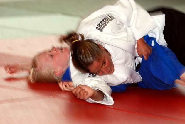 | Lea Diehl (unten) hielt lange Zeit mit gegen die Holtenerin Czogallen, doch am Ende fehlten ihr im Schwergewicht die nötige Kraft | ||