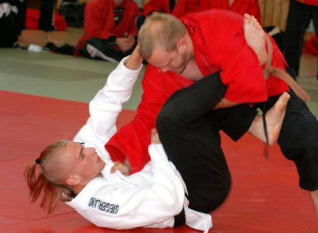 Direkt im Anschluss trafen die Siegerländer auf die Heimmannschaft 1. JJJC Dortmund. Matthias Fries stellte seine Mannschaft auf 4 Positionen um, da das ausgegebene Tageziel schon erreicht war. Im ersten Einzelkampf bis 81kg konnte man auch direkt 1:0 in Führung gehen: Janis Dinter machte einen überragenden Kampf der von Taktik geprägt war und holte kurz vor Schluss den ersten Punkt sowohl Manuel Solms (bis 66kg) als auch Christian Rotthoff (bis 60kg) standen auf verlorenem Posten, doch der bis 100kg startende Sebastian Kuhlmann, konnte wie schon Janis Dinter ein Ausrufezeichen setzen und seinen wirklich starken Gegnernach hartem Fight den Punkt abluchsen. Doch danach lief nichts mehr rund. Manuel Gabsa, diesmal eine Klasse höher bis 90kg startend, gab schnell den Kampf ab. Ebenso ging es Sebastian Neuser, der bis 73kg eingesetzt wurde, und auch verlor. Somit war der Kampf für die Siegener Judoka bereits gelaufen. Zum Schluss kam Thomas Schäfer (über 100kg) zum Einsatz, auch den fünften Punkt für den 1.JJJC nicht verhindern konnte. Damit rangiert nach nun 3 Kampftagen Die junge Truppe der JKG II immer noch auf dem tollen 6. Platz und wird wohl mit den Abstiegsplätzen nichts mehr zu tun haben. Am 7. November tritt man mit Heimrecht gegen den Klassenprimus TuS Iserlohn und den schon abgeschlagenen TuS Eichengrün Kamen an |