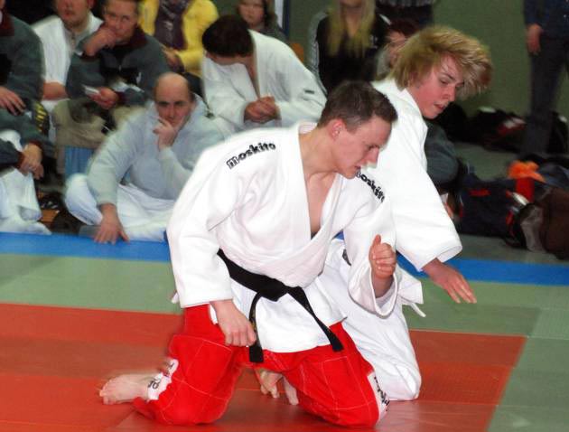 Auch gegen den Gastgeber aus Kamen tat man sich schwer. Hier musste sich im Auftaktkampf bis 73 kg der ansonsten stark auftretende Manuel Solms bereits nach 30 Sekunden geschlagen geben. Sebastian Neuser, diesmal bis 66 kg, war aber an diesem Tage eine Bank und schaffte schnell den Ausgleich. Johannes Kuhlmann (-90 kg), wurde kurz vor Ende der Kampfzeit, trotz tollem Fight geschlagen. Youngster Steffen Gabsa (-60 kg) schaffte es, mit einer taktischen Glanzleistung über die volle Distanz zu gehen und punktete. Die Gewichtsklasse bis 100 kg gab man kampflos ab. Und dann wurde noch Punktegarant Janis Dinter mit Ippon von der Matte geschickt, so dass die Mannen um Matthias Fries bereits uneinholbar 4:2 zurücklagen. Der wiederum verkürzte noch auf 3:4 aus Siegerländer Sicht. |