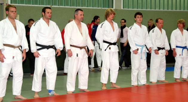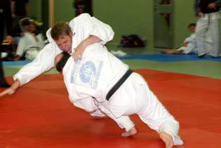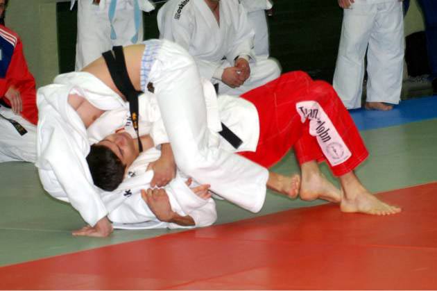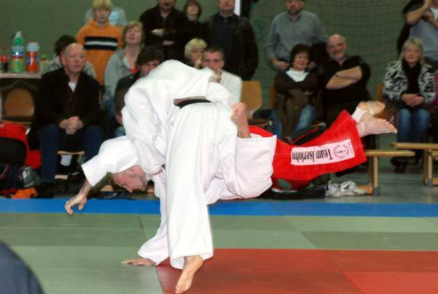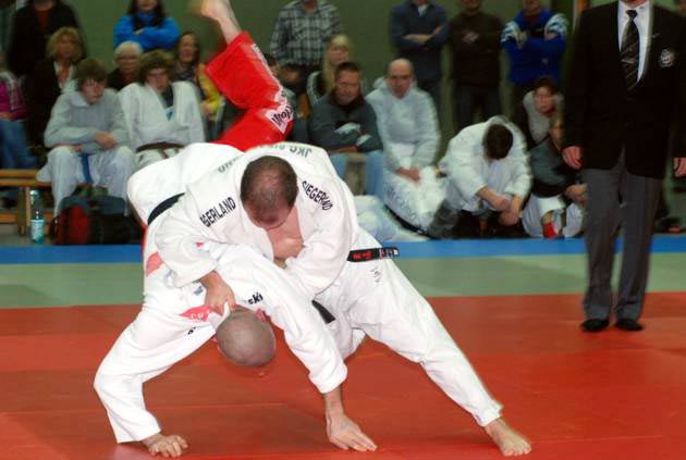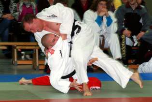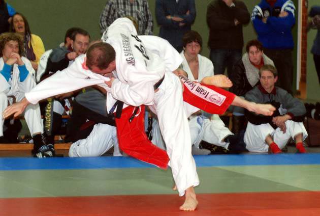 Als erstes mussten die beiden Gästemannschaften beim Ausrichter JC Gernsdorf ran, und schnell waren die JKG'ler von der Kampfstärke Iserlohns nach dem 7:0 gegen Kamen überzeugt Viel rechnete sich "Captain" Matthias Fries nicht aus, denn das größerer Augenmerk war für einen Sieg gegen Eichengrün Kamen ausgerichtet. Doch im Eiltempo zog der TuS nach Niederlagen von Thomas Schäfer (-100 kg), Christian Rotthoff (-60 kg), Janis Dinter (-81 kg) und Simon Dietewich (-73 kg) mit 4:0 davon was schon die Entscheidung für den Gast bedeutete. Ein fulminanter Ausheber gegen Schwergewichtler Matthias Fries und es stand aus heimischer Sicht 0:5. Einziger Lichtblick in der Begegnung war bis 66 kg Marco Werder, der einen gigantischen Fight ablieferte und trotz des aussichtslosen Gesamtrückstandes nicht nur das Publikum begeisterte sondern auch verdientermaßen der Ehrenpunkt holte. Murat Akbayrak (-90 kg) lief zum 6:1 trotz eigener hoher Führung in einen Abtaucher und ließ so eine völlig unnötige Niederlage zu. |