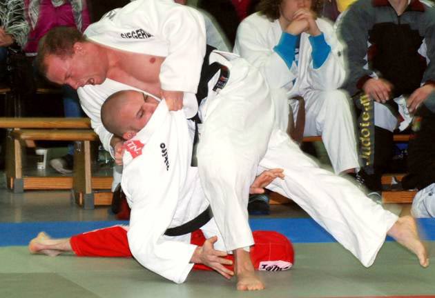 Nachdem Börde-Union ebenfalls gegen Bochum 4:3 gewonnen hatte, war man gegen den Gastgeber auf ein enges Duell vorbereitet. Unerwartet und leider auch völlig unnötig hatte Achim Schneider verloren und Marcell Meyer konnte nach starkem Kampf gegen den Routinier Guido Luhmann nur zu einem Unentschieden kommen, obwohl er den Kampf dominierte. Für den Ausgleich zum 1:1 sorgte dann Murat Akbayrak, der taktisch ausgezeichnet kämpfte und seine gute Leistung nach 3 Minuten durch seine Spezialtechnik Uchi-Mata (Schenkelwurf) krönte. Dominik Aurand und Xaver Stausberg gaben trotz guter Leistungen ihre Punkte ab. Somit waren wie im ersten Kampf Christian Rotthoff und Marco Werder wieder die beiden, die beim Stand von diesmal 1:3 agieren mussten, um zumindest das Remis für die Mannschaft zu retten. Wiederum zeigten sich beide Nervenstark. Rotthoff gewann nach halber Kampfzeit mit kleiner Innensichel, genau wie Marco Werder der dafür aber nur eine halben Minute brauchte. |