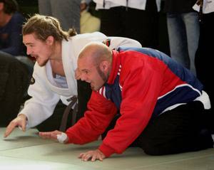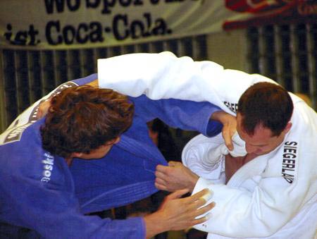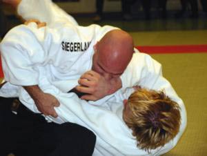 Und mit dieser Einstellung stieg man auch ein in die erste Begegnung gegen die SUA-Witten ein. Bis 66 kg eröffnete Sven Steiner den Mannschaftskampf und brachte das Siegerländer Team kurzer Hand nach 2 Minuten durch einen Haltegriff mit der 1:0 Führung Stefan Kühne der mir Schwierigkeiten in die Partie startete lief lange einen Rückstand hinterher. Doch kurz vor Ende der Kampfzeit drehte er richtig auf und gewann mit einem Konter dem kurze Zeit später noch ein Hüftwurf folgte. Und weiter ging es mit dem Punktesammeln. 3:0 durch den 100 kg Mann Paul Maaskant mit Haltegriff, 4:0 Matthias Feld mit Seoi-nage (Schulterwurf) und 5:0 Torsten Schmitt mit 2 tollen Aushebern. Der nächste Punkt lies nicht lange auf sich warten, denn nach 15 Sekunden brachte Alexander Umirsakow den Wittener mit einem Ausheber auf die Verliererstraße. Lediglich Mark Fengler, der Schwergewichtler im Team, patzte und lies den Ehrenpunkt zum 6:1 Endstand zu. |