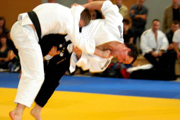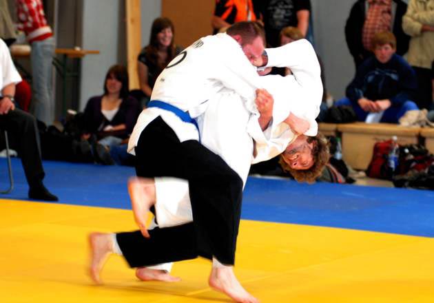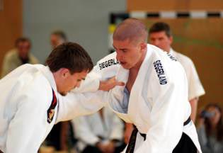 Zunächst musste man gegen den Sieger der beiden Gastmannschaften Hertha Walheim ran, die sich gegen Duisburg knapp mit 4:3 behaupten konnten. Mannschaftsführer Matthias Feld eröffnete das Reigen bis 60 kg, aber seine aggressive mutige Kampfweise wurde nicht belohnt. Völlig überfordert, kassierte Alexander Umirsakow drei Strafen und wurde zu guter letzt auch noch ausgehoben. Bis 90 kg hielt Peter Mitschein seinen Kampf lange offen, doch ein Uchi-mata (Schenkelwurf) brachte eine Minute vor Schluss das Ende und den schmerzlichen Zwischenstand von 0:3. Trotz aufopferungsvollem Fight konnte Marcel Meyer mit nur einer kleinen Wertung gegen ihn, die vorzeitige Mannschaftsniederlage nicht verhindern, es stand bereits 0:4 und so blieb den letzten drei JKG-Athleten lediglich die Aufgabe der Ergebniskosmetik übrig. Thomas Leppink (-81 kg) wurde gekontert. Markus Longeru (- 100 kg) gelang es als erstem Siegerländer in Führung zu gehen. bis kurz vor Kampfende wurde dieser Vorteil auch gut verwaltet doch dann geriet er unglücklich in einen Haltegriff. Leichtgewichtler Achim Schneider holte den Ehrenpunkt zum 1:6 |