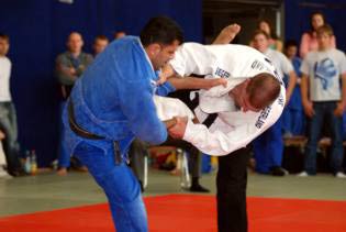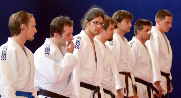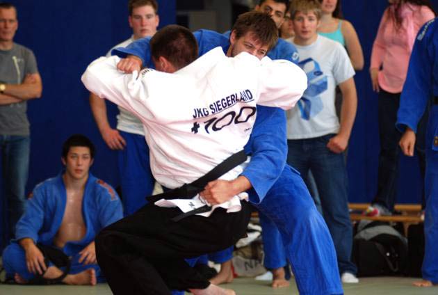 Somit standen die Vorzeichen für das erste Duell der Siegerländer gegen den BTW Bünde nicht gut und das Ergebnis gegen sie aus dem letzten Jahr von 1:6 machte die Situation nicht gerade besser. Verheißungsvoll startete Markus Longeru bis 90 kg. Einen Rückstand durch Schulterwurf konnte er schnell egalisieren, und toppte dies noch mit einem Schulterrad zur 1:0 Führung. Spannend verlief die Partie von Mannschaftskapitän Matthias Feld. Zwar lag er schnell mit einer mittleren Wertung (Yuko) für Fußfeger im Hintertreffen, doch gab sich der Leichtgewichtler nie auf. |