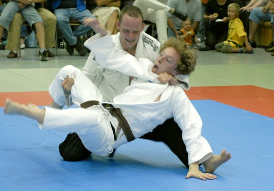 In der ersten Begegnung (JG Ibbenbüren) gingen die Siegerländer mit Marcel Mayer (+100 kg) nach eigenem Rückstand durch eine bildsaubere Innensichel in Führung. Sebastian Neuser, der für dem Übergewichtigen Sven Steinen bis 66 kg einspringen musste, war unterlegen. Markus Longeru (-90 kg) wunderschön mit Aussensichel, konnte auf 2:1 ausbauen, doch nach wenigen Sekunden lief der Holländer Thomas Leppink( - 81 kg) auf einen Seoi-nage (Schulterwurf). Aber nach dem Alexander Umirsakow (-73 kg) äußerst knapp, und der Mannschaftskapitän Mathias Feld (-60 kg) um so deutlicher unterlegen war, gab es an der ersten Niederlage nichts mehr zu rütteln. Paul Maaskannt (- 100 kg) konnte nur noch zur 4:3 Niederlage Ergebniskosmetik betreiben. |