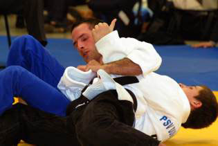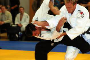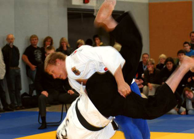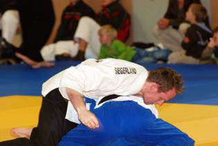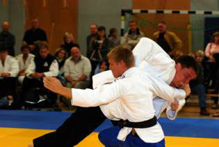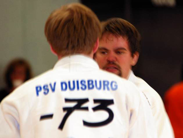 Zunächst mussten die Siegerländer gegen den unterlegenen der beiden Gästemannschaften den PSV Duisburg ran. Doch der Funke Hoffnung hier heute was holen zu können war schnell im Keim erstickt. Marcell Meyer bis100 kg und Andree Loos bis 73 kg wurden schon nach kurzer Zeit ausgekontert. Peter Mitschein (-100 kg) lief im dritten Kampf immer seine Möglichkeiten hinterher und hatte gegen das 0:3 der Duisburger nichts entgegen zu setzten. Matthias Feld der Mannschaftskapitän bis 60kg geriet zwar schnell in Rückstand kam aber wieder mit einer Wertung für Schulterwurf heran und fightetet aufopferungsvoll weiter. Doch die Mühe wurde nicht belohnt. Stattdessen hieß es uneinholbar 4:0 für Duisburg. Auch Torsten Schmitt enttäuschte bis 81 kg. Einiger Glanzpunkt blieb Christoph Keldenich, der trotz des hohen Rückstandes Stärke bewies und in einem tollen Kampf den Ehrenpunkt holte. Das war's aber auch schon. Mark Fengler wurde zu guter letzt im Schwergewicht klassisch zum 1:6 ausgehoben |