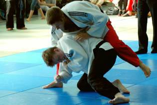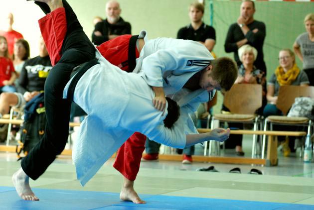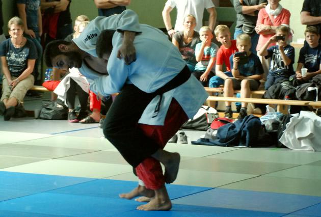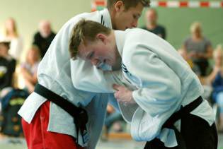 | Drei Umstellungen gab es gegen Kentai Bochum, und der Auftakt ging noch schneller. Mit einem sehenswerten De-ashi-barai fegte Marco Werder den Bochumer nach nur 15 Sekunden con der Matte. Jörg Götzen erhöht kampflos auf 2:0. Ein Augenschmaus war der Kampf von Marcell Meyer. Er führte seine Gegner regelrecht vor, sammelte eine Wertung nach der anderen bevor er mit einer Innensichel (O-uchi-gari) dem Kampf ein Ende setzte. Marvin Joest (-90 kg) gestaltete seine Begegnung vier Minuten lang, aber ohne nennenswerte Aktionen von beiden Kämpfern, offen. Nur eine kleine Unaufmerksamkeit brachte den Anschlusspunkt. Doch das war's auch schon was Bochum zu bieten hatte. Sirvan Bahrami erhöhte auf 4:1 mit O-soto-gari, und Fabio Ostermann (für Timo Burk) siegte ohne Gegner. Das 6:1 zum krönenden Abschluss ließ aber etwas auf sich warten. Manuel Solms (-81 kg) kam zunächst nicht richtig an seine Gegner ran, doch nach knapp zwei Minuten konnte er erstmals eine Fußwurfkombination durchbringen und ließ so die Halle zum 6:1 und der erneuten Tabellenführung jubeln. | ||