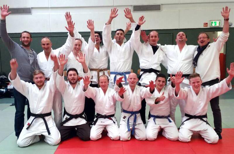 Damit hatte man sich für das anstehende "Finale" gegen den DSC schon gut eingeworfen. Und mit gleicher Schlagzahl ging es auch für die Siegerländer weiter. Umirsakow gewinnt mit einer Kontertechnik und Bahrami in seiner unnachahmlichen und souveränen Art erhöht mit Fußwurf auf 2:0. Die spannendste Begegnung nach ständigen Führungswechsel ging letztlich mit Haltegriff gegen Werder aus. Hoffnung keimte für Wanne-Eickel noch mal auf weil Joest das 2:2 nicht verhindern konnte. Doch Marcell Meyer, Matthias von der Wippel-Feld und Manuel Solms konnte dem Ruhrpott-Verein mit drei vorzeitigen Siegen den Zahn schnell wieder ziehen. Jetzt wird erst mal ausgelassen gefeiert, bevor man die neue Aufgabe Verbandsliga angeht |