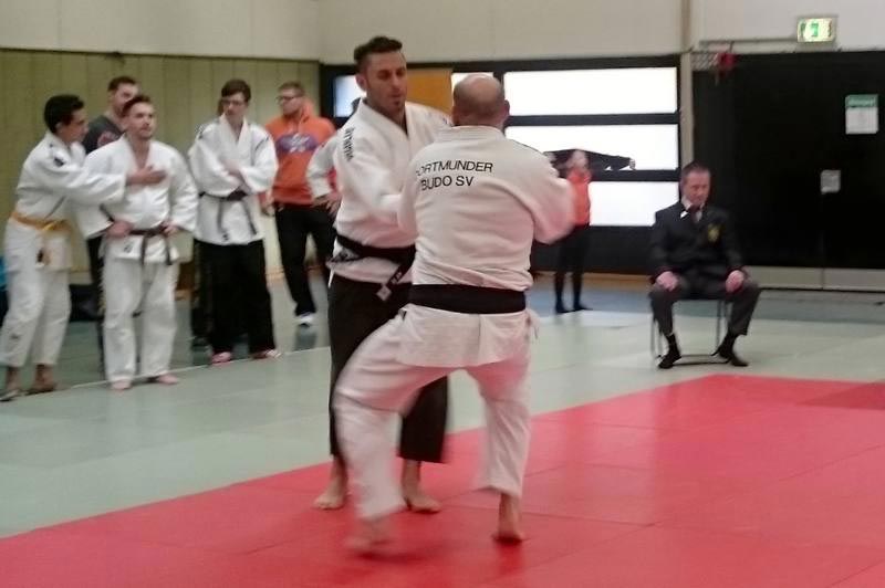 Alexander Umirsakow (-81 kg) eröffnet mit einer Fußtechnik den Siegeszug gegen Dortmund. Im Halbschwergewicht zieht Sirvan Bahrami mit Schenkelwurf gegen den starken Dortmunder Peter Swirkosz nach. Genau wie Marco Werder (-66 kg) der nach 3 Minuten mit Uchi-mata den Sack zu machte. Marvin Joest (-73 kg) erhöht schnell und uneinholbar mit Hüftfeger auf 4:0. Marcell Meyer (+100 kg) und Leichtgewicht Matthias von der Wippel-Feld demütigten Dortmund endgültig mit schnellen Siegen und den Punkten fünf und sechs für die JKG. Manuel Solms ließ den Ehrenpunkt zu |