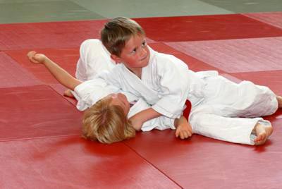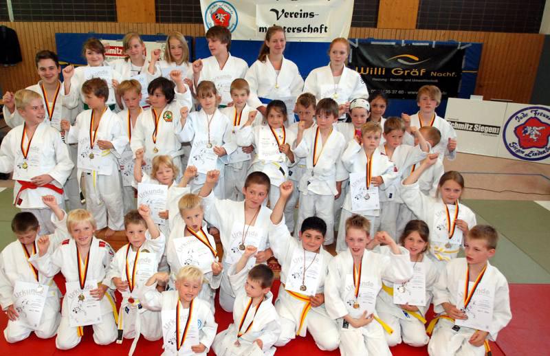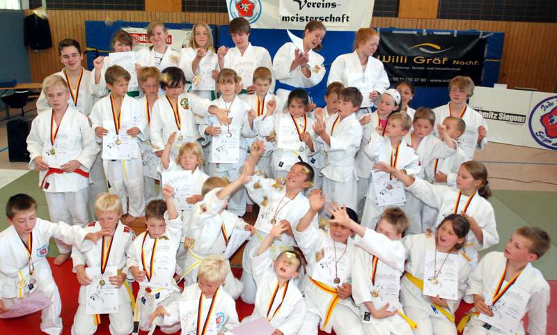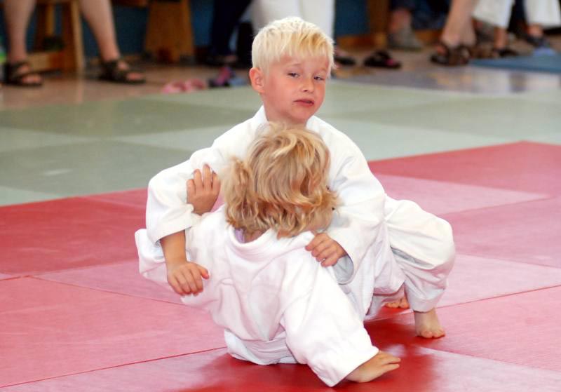 Marius Gille war der kleinste Vereinsmeister und wirft hier Mia Lorenzen auf den Po | ||||
