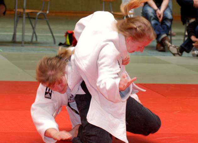 Zunächst stand die Sport Union Anne als Gegner auf dem Plan. Anke Pfeifer eröffnete mit einem Kontersieg die Partie. Anna Stausberg aus taktischen Gründen eine Klasse höher eingesetzt nämlich bis 70 kg zeigte eine tollen Fight und schulterte nach knapp zwei Minuten die Wittenerin zum 2:0. Erena Fligg musste den Anschlusspunkt zulassen. Die anschließende Begegnung zeichnete sich wohl als Schlüsselkampf ab. Julia Rotthoff dominierte den Kampf gegen die starke Sarah Kasper konnte sich aber nicht entscheidend durchsetzen. Kasper bekam die zweite Strafe wegen Passivität, doch der Seitenrichter sah das anders und die Führung war wieder futsch. Stattdessen brachte die einzige Unachtsamkeit von Julia Rottoff den 2:2 Ausgleich. Danach zog Witten durch die Niederlagen von Lea Diehl (-78 kg) und Sabrina Stettner (-57 kg) davon. Alina Schuster brachte aber noch mal nach nur 5 Sekunden Kampfzeit mit einem tollen Schulterwurf die richtige Antwort zum 3:4 |