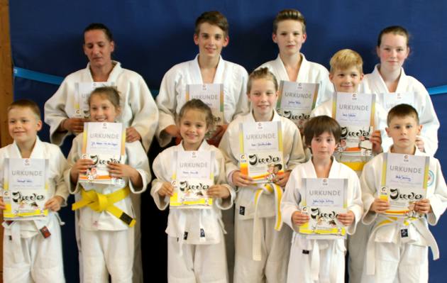 | Strahlende Judofreunde nach bestandener Gürtelprüfung | ||