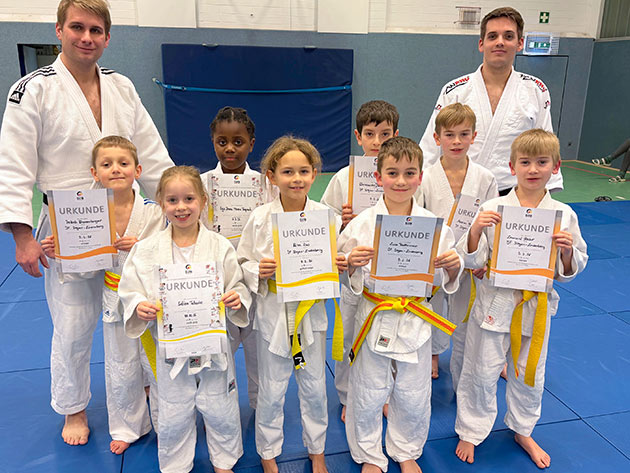 Weil acht unserer jungen Nachwuchssportler am eigentlichen Prüfungstermin Ende November erkrankt waren, sollte die lange Vorbereitungszeit nicht umsonst gewesen sein. Deshalb gab es für sie jetzt ein Zusatztermin, wo sie doch noch ihr Erlerntes den beiden Prüfern Manuel Gabsa und Tim Prinz zeigen konnten. Letztlich hat es sich für alle gelohnt, und die Freude war groß, als sie ihre Prüfungsurkunden und den dazu gehörigen Gürtel überreicht bekamen. Die Judofreunde Siegen gratulieren recht herzlich zur bestandenen Prüfung |